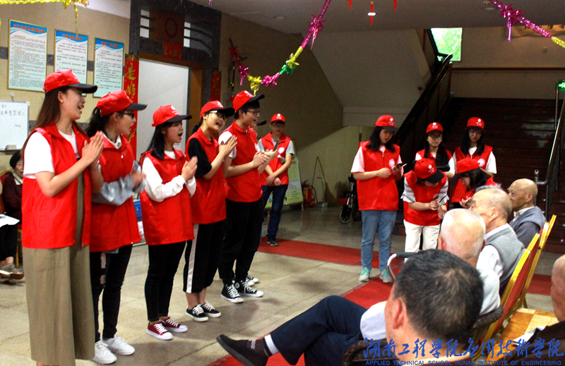 交谈过后,志愿者们开始表演准备好的节目。在为老人们演唱完一曲《茉莉花》后,一位老奶奶也跟着一起参与了后面的花鼓戏表演,好嗓音赢得了现场一阵喝彩。时间在欢声笑语中流逝,在本次活动结束时,志愿者们同老人们合影留念。