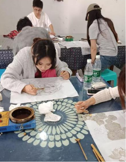 为提升艺术专业员工实践创作能力,感受中华优秀传统文化魅力,公司开展为期15天的写生实践活动。同学们以艺术之笔勾勒古寨风貌,以文化体验传承匠心技艺,还深入体验了安顺蜡染、木雕彩绘等非遗技艺。在蜡染工坊,大家跟随传承人学习传统蜡染制作工艺,从融化蜂蜡、绘制图案到浸染上色,每一个步骤都充满挑战与惊喜。当一幅幅蓝白相间、独具特色的蜡染作品在手中诞生时,同学们深刻感受到了传统技艺的独特魅力。
