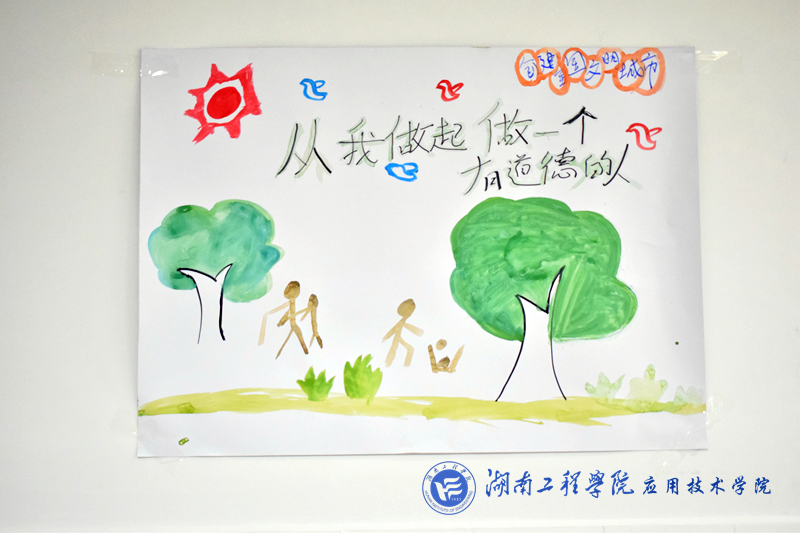 活动前各班级纷纷贴出各自精心设计的海报。活动期间,各班级以不同形式开展了丰富多彩的团日活动。人力资源1681班的主持人以开门见山的方式直入主题,带领大家朗读背诵社会主义核心价值观。旅游管理1681班更是别出心裁,主持人将平日生活中的文明举止实例款款道来,通过讲小故事,引出其中的大道理。