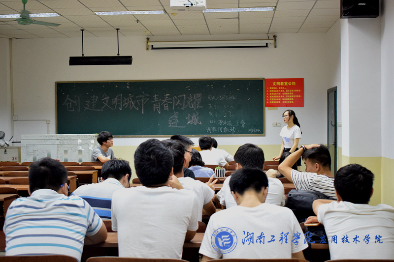 电信1581班首先宣讲创建全国文明城市相关知识,接着班级进行创文知识问答比赛,同学们热情高涨,积极举手回答,现场氛围热烈。工程1581班主持人组织班级成员学习并且熟知《2017年湘潭市创建文明城市调查问卷及承诺书》,以此引起同学们对本次活动的重视。