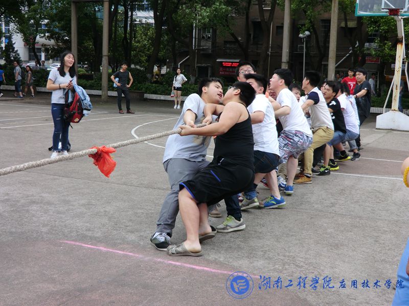 虽然天气潮湿而闷热,却也没能阻挡得住同学们的热情,比赛还未正式开始,各班同学都已经到达篮球场,积极的进行候场等待,使赛场氛围十分热烈。第一场比赛即将开始,市营1481与电气1482的两班队友们都各自紧握住绳子,卯足了劲拉住绳子,屏气凝神,只待哨声吹响的一刹那奋力后拉。随后,裁判一声哨响,比赛正式开始,双方势均力敌僵持不下,与此同时,赛场外的女生也不断的为自己班级加油呐喊,最后,在经过了激烈的拉锯战后,市营1481获得了最终的胜利。