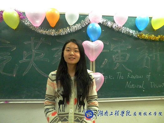 掌声雷鸣,比赛开始。第一位选手上台,她流利的英语口语、活泼自信的台风深深吸引着观众,演讲得精彩,打响了比赛的第一枪。接着,各位选手依次亮相,将他们的演讲题材娓娓道来,时而言辞犀利正中题心,时而含蓄委婉沁人心脾,让评委和观众们一度拍掌叫好。而英语0981班的言佳羽同学则把本次英语演讲比赛推向了高潮。她流利的“spoken English”及机智的应变能力赢得评委们的一致好评,观众的热烈掌声更是不断。在评委提问环节中,她以优美的英语语句详细地向大家描述了伟大领袖毛主席故居和国画大师齐白石纪念馆。经过评委们认真比选,言佳羽同学以88.75的高分摘得了此次比赛的桂冠,来自英语0982班陈思哲和电气0983班林轩并列大赛第二名,英语0982班彭贝贝、国贸0981班陈颖、材料0981班江梦霖三位同学获得第三名。赛后,记者采访了现场一位男同学,他说:“从参加本次英语演讲比赛选手的精彩表现中,我学到了很多东西同时也感受到很多,今后我要努力学习英语,提高英语的实际应用能力。”