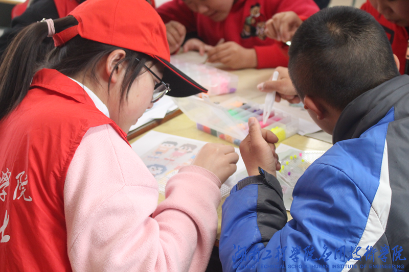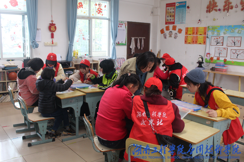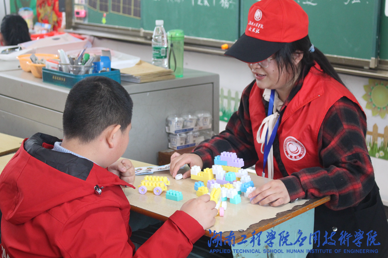 做好充足的准备工作后,志愿者们在工作人员的带领下分成六个小组,带着拼装积木与气球去到不同的教室给小朋友带去温暖。活动伊始,志愿者带领小朋友们折叠气球、搭建积木、进行手工制作,孩子们很快融入其中,有完成工作的同学积极举起手中拼好的积木向志愿者们展示。生活娱乐组志愿者与小朋友们一起唱《我的好兄弟》,歌声嘹亮悦耳;舞蹈表演组志愿者带领小朋友们跳《少年》,热情洋溢的舞蹈让孩子们喜笑颜开。日常生活组志愿者耐心教导小朋友们使用一些常用APP,检验成果时一名叫蔡博伟的小朋友表示自己已经可以熟练使用高德地图导航找到回家的路了,大家一起互动交流,教室里充满了欢声笑语。