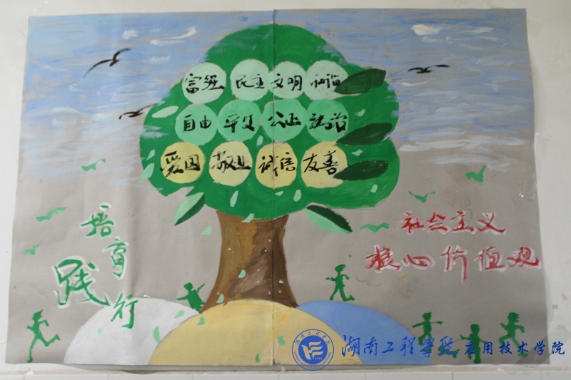 “富强、民主、文明、和谐...”只听见公司南一教奏响了朗诵社会主义核心价值观的交响乐。记者顺着一张张个性十足、新颖多彩的海报来到了经济1581、经济1582、国贸1582的活动现场。首先,主持人介绍了社会主义核心价值观的含义,然后通过分组讨论其主题的未来意义和科普知识。活动中同学们从自我生活的实例出发,积极阐述对“富强、民主、文明、和谐、自由、平等、公正、法治、爱国、敬业、诚信、友善”的理解。