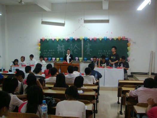 比赛共分为两场,参赛队伍是从上一场的八强辩论赛中脱颖而出的四支优秀队伍。首场比赛由电气0984班与物流0982班就“在校老员工累积知识更重要还是塑造人格更重要”的辩题展开了激烈的辩论,一开始双方就各自鞭辟入里地阐明了己方观点并据理力争,随后的自由辩论环节更是精彩绝伦,整个场内掌声经久不息,伴着双方第四辩精彩的总结陈词,首场比赛也落下了帷幕,接着由陶连洲老师分别对双方的表现作了点评。经过十分钟的稍作休整,第二场比赛也随即开始了,由土木0886班对阵经济学0881班,不得不提的是这两支参赛队有一个特点,就是正方辩手都是男生而反方辩手都是女生。双方就“老员工应该做智者还是勇者”展开了辩论,双方在立论时就开始引经据典,从多方面来证明自己观点的正确性。到了自由辩论环节,双方辩手更是妙语连珠,本场比赛最大亮点就莫过于正方和反方的四辩的精彩陈词。正方四辩奇思妙想,趣味盎然。反方四辩反应机敏,心思缜密。双方精彩的表现多次博得了老师和同学们的掌声。最后由陶连洲老师对这场辩论赛作了讲评,他夸奖反方四位辩手巾帼不让须眉的“女将”具有很强的逻辑能力和应变能力。