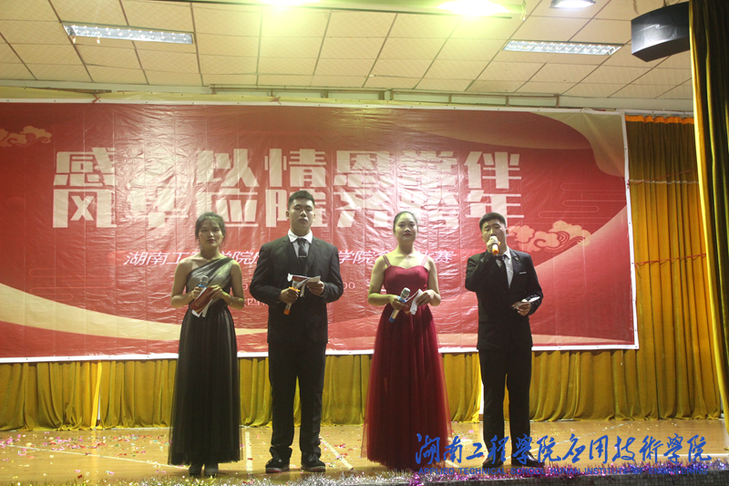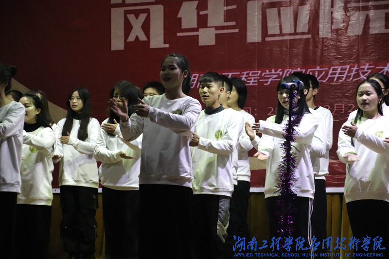 第一篇章:筑梦青春。青年是祖国的未来,民族的希望。由团总支及社联干部带来的舞蹈《天天向上》点燃了同学们的热情,引来阵阵掌声,青春就是要不顾一切,敢做敢拼。市场营销1981班,产品设计1981班,国际贸易1981班分别带来的合唱《阳光下你我同行》,他们的表演各具特色,相同的歌曲,却给同学们带了不同的感受。由员工会干部带来的情景剧《校园贷》,他们有趣的台词,贴合校园生活的剧情,欢声笑语之余让同学们了解到校园贷的危害。