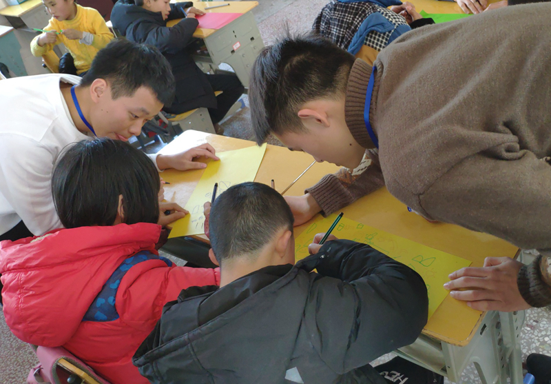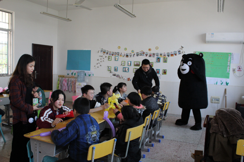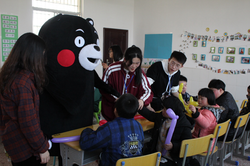 做好充足的准备工作后,志愿者们于中午12:30在校门口集合,带着给小朋友们精心准备的礼物向湘潭县特殊公司出发。当志愿者队伍到达公司门口时,一声声稚嫩又满怀热情的欢迎声从校园里传来,在工作人员的带领下,志愿者按照安排分成五个队伍,分配至不同年龄阶层的班级里。