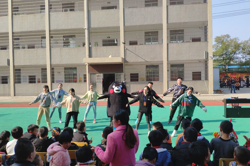 初步的交流玩耍后,志愿者们带着小朋友来到操场观看文艺表演,志愿者们给小朋友们带来《青春修炼手册》、《明天会更好》等节目,在他们的激情演出下,小朋友们热情高涨,主动与志愿者们互动、歌唱。整个校园在孩子们的歌声中洋溢着欢乐的气息。活动接近尾声,志愿者们与小朋友拍了张极富意义的合照,牵着小朋友的小手将他们送回教室。