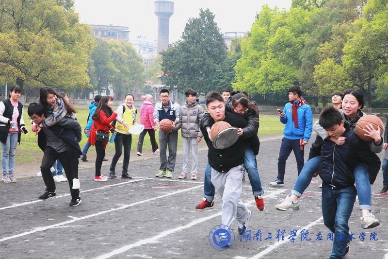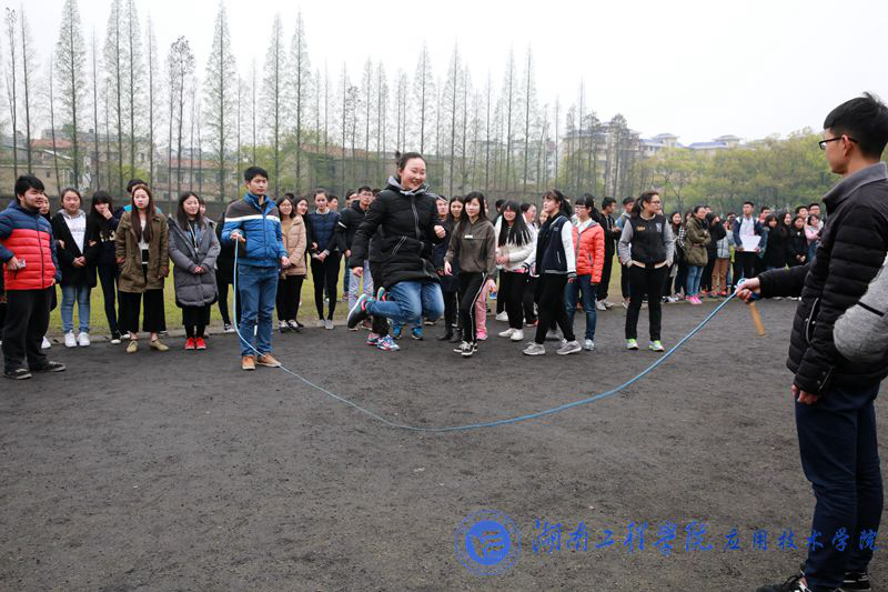 此次运动会共有七队,大一年级同学按男女混合编为六队,由体育部部长和纪检部部长带队,第七队则为员工会队,由部分员工会干事组成。运动会分四个项目:集体跳绳、拔河、踢毽子和花样接力,并采用积分制进行评分。四个比赛项目各有亮点,其中花样接力最为精彩。花样接力分为七棒,每一棒都有不同的接力方式,有男生背女生,有两人嘴咬橙子,有两人三足,还有端托盘,有男生被描口红涂腮红,还有蒙眼跑,抱篮球跳跃,男女生互换鞋子,参赛队员状况不断,观众也笑声不断。下午4点,比赛圆满结束,二队获得这次运动会第一名,一队和七队并列第二。