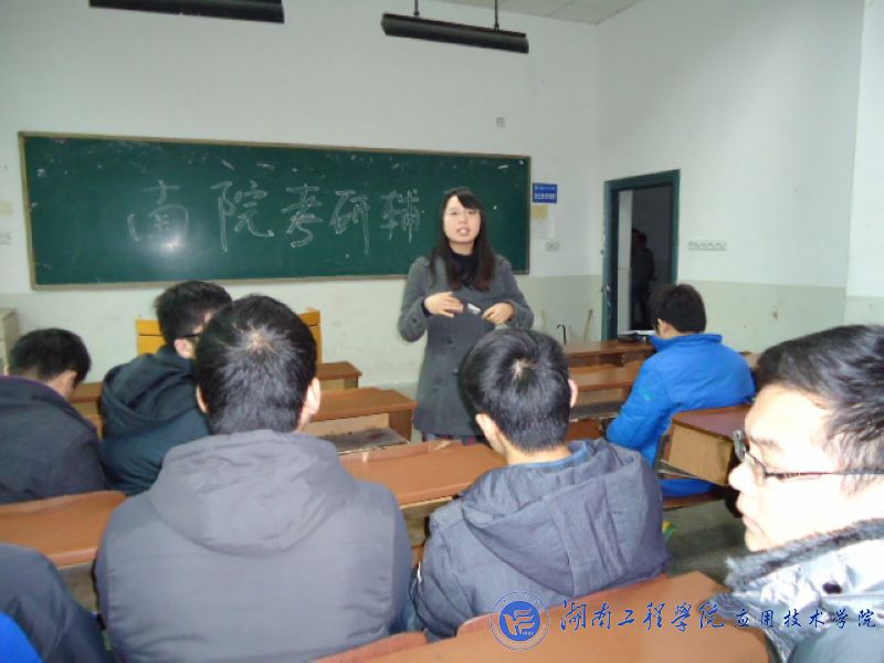 12月12日下午,公司在南校区一教104召开了考前辅导会,给即将奔赴考场的考研学子们加油鼓劲。初步统计,南院有82名同学报名参加明年1月份的研究生入学考试。党总支副书记徐粤宇、辅导员王尔奇老师出席了辅导会。