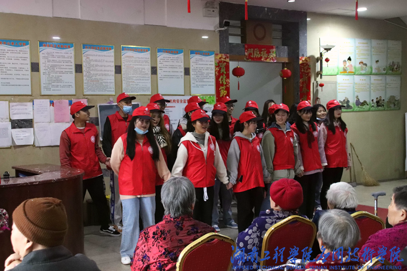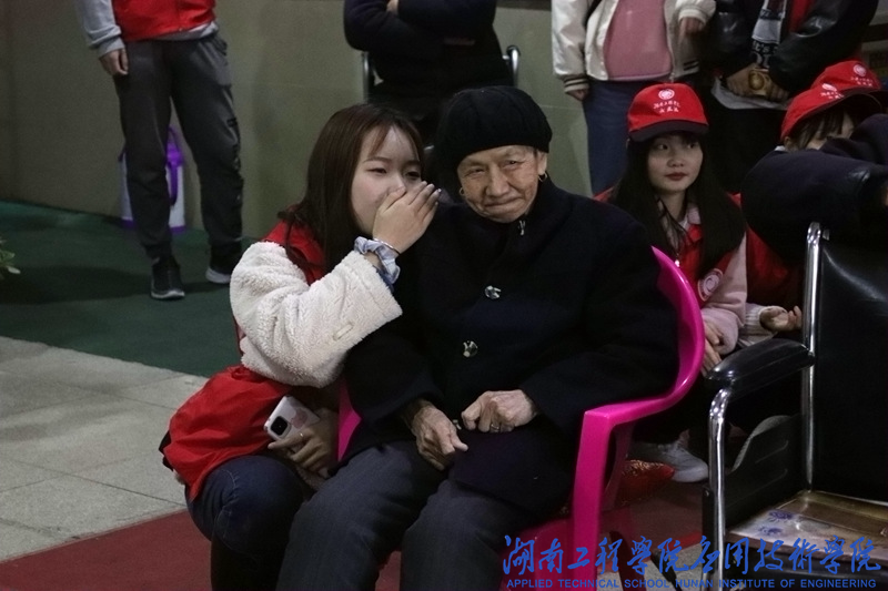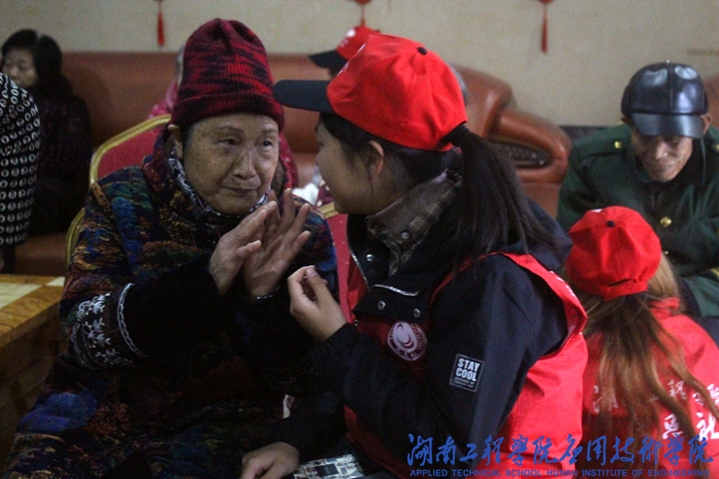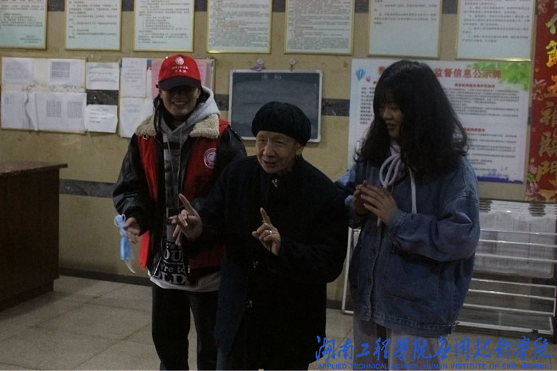 下午13∶30,寒风阵阵,细雨点点,志愿们准时在校门口集合,带着满满的爱心,踏上了前往敬老院的道路。到达敬老院后,志愿者们热情地邀请爷爷奶奶们观看她们精心准备的表演。一曲花鼓戏《刘海砍樵》拉近大家的距离,“刘大哥!嗨!”,大家都跟着唱起来。一首《浏阳河》更是活跃了现场气氛,一支《酒醉的蝴蝶》整个屋子里洋溢着幸福的氛围。志愿者们给爷爷奶奶们捶捶腿,揉揉肩,与他们拉拉家常。许多志愿者蹲下来,拉着爷爷奶奶的手,与他们进行心与心的交流,老人们在志愿者的认真倾听中敞开心扉,聊起许多过去的事情,聊起年轻时候的故事。在长达两个小时的陪伴中,志愿者和老人们都享受着温馨的美好时光。离别之际,爷爷奶奶们眼泛泪花……他们亲切地拉着志愿者们的手,依依不舍地目送志愿者们离开。