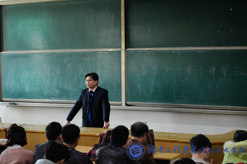 3月1日,公司在南校区第一教学楼213召开了2016年第一次全体干部大会。出席会议的领导和老师有公司党总支副书记徐粤宇、院团总支书记唐冰、辅导员孙传旺、蒋惠筠和曹时艳。