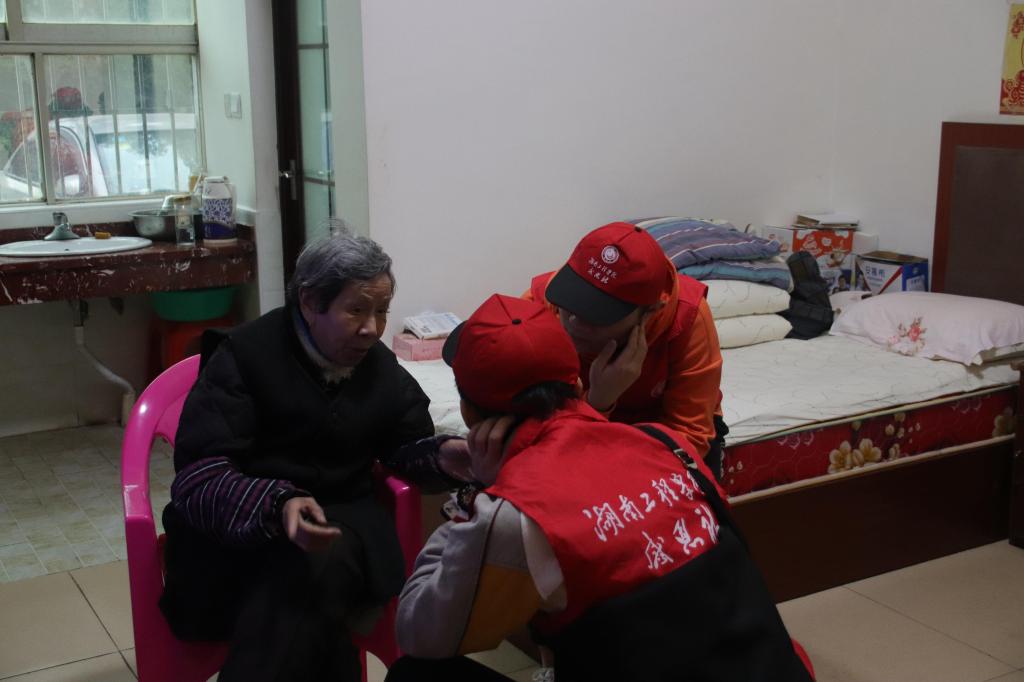 下午3:00,志愿者们在校门口集合,排着整齐的队伍向敬老院出发。来到敬老院,志愿者们热情地和老人们打招呼,在工作人员的带领下,志愿者两三人一组走进老人们的房间,为老人们打扫房间,帮老人打热水等等,陪老人聊天。有位老人还特意询问了志愿者的学习情况,并勉励道:“年轻人要多学习、爱学习、肯钻研,做一个对社会有用的人。”各个房间谈笑热闹,萦绕着欢声笑语。