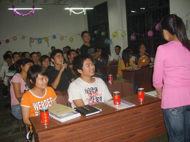 走进该班活动所在地就被其特意妆扮的现场所吸引,全班同学整齐安静地等待交流会的开始。七点整,在该班班导李东成的祝福声中,交流会正式开始。来自自动化0581、0681班的多名学长陆续上台,给刚入象牙塔的90后们带来自己多年大学学习生活经验系数道来,王刚、邓海轮以一名大四毕业生的身份给在座的学弟学妹们带来精彩的讲述。王刚说:“老员工就应该像男人,而非男生”博得在场一片喝彩,一次性通过英语四六级的邓海轮则将自己学习英语的方法教给每位新生,作为大三的曾健、陈晓雷更多的自己身边的学习生活中的问题给学弟学妹们分享、讲述,并回答场下同学们各式各样的问题,夺得欢快的笑声和热烈的掌声,解答新生心中各种难题和学弟学妹们共度一个难忘的夜晚。