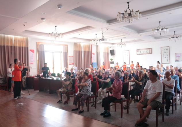 志愿者们齐聚养老中心大厅,考虑到老人的身体状况,有针对性地带领老人们进行舒缓的康复运动,随着静缓的音乐节奏,老人们舒展身体,脸上洋溢着幸福的笑容。