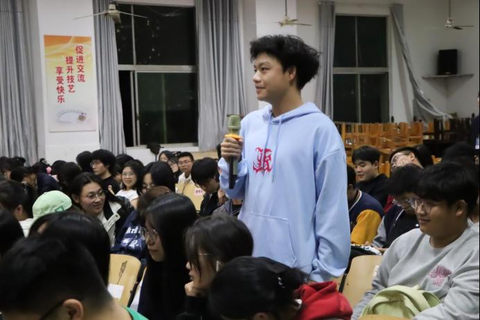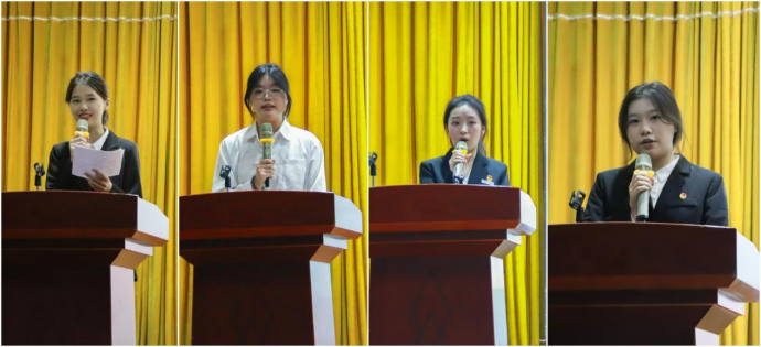 “红色青春”宣讲团成员高伟人青春故事为题号召青年人要不负时代,不负韶华,以“孩儿立志出乡关,学不成名誓不还”的精神行走在中国第二个百年的目标奋斗进程上;朱楚怡围绕历史周期律的两个答案,鼓励同学们不断地学习与探索,用智慧和力量,跳出历史周期问题,迎接美好明天;周宣杜分享了从长征时期、革命时期到抗疫时期的红色故事及红色精神,让同学们对革命有了更加深刻的感受,从先辈故事中体会到攻坚克难的意志力、不负人民的向心力、团结群众的凝聚力,希望我们代代相传,生生不息;胡梦涵以传统服饰“马面裙”受国际大牌觊觎,引出了文化自信的话题,点燃了大家对优秀传统文化的自信和热情,呼吁大家为传统文化复兴奉献青春力量,为社会主义文化强国提供青春创意。