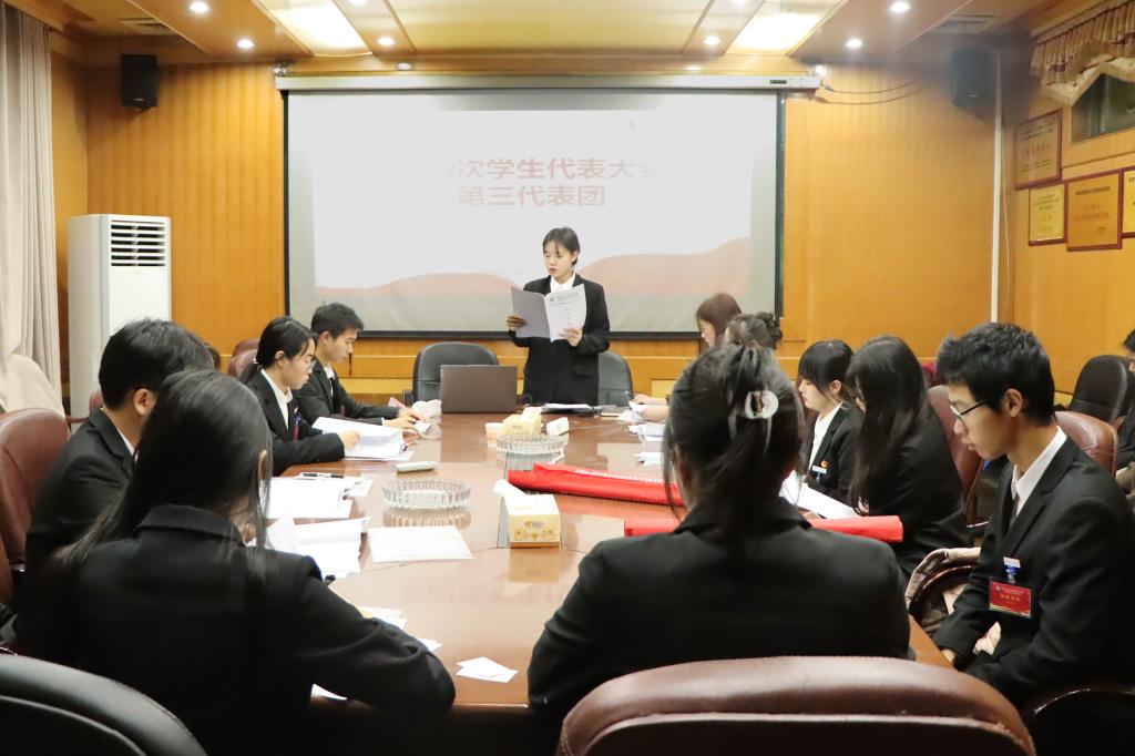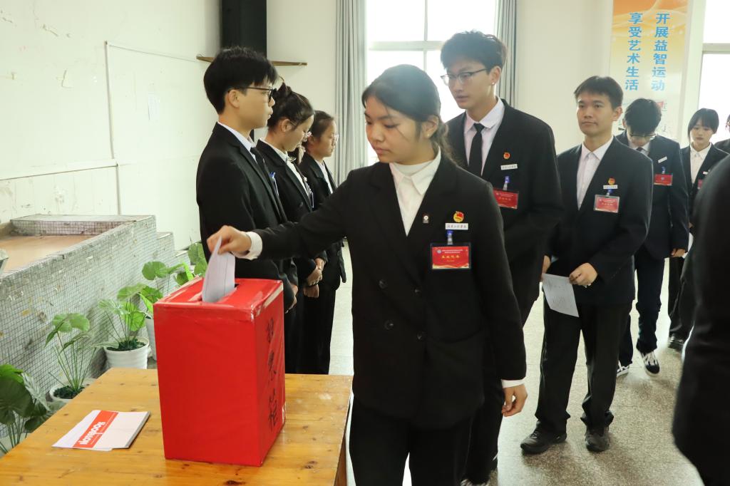严明致开幕辞她期望新一届员工会秉持“全心全意为同学们服务”宗旨履职,勇担青年领袖角色,勇做新时代青年领头人。兄弟高校员工会代表湘潭大学兴湘公司付浩然致贺词,他期盼以此次大会为新起点,延续两校员工会密切合作与情谊,为两校青年员工提供更多高水平、专业化的支持、引导和服务。梁桥代表公司团委致辞,他表示:“此次学代会是团结、胜利、奋进的大会,代表们认真履职、建言献策,展现良好风貌及责任感、使命感,相信新一届员工会委员会能传承优良传统,服务同学与公司发展。”