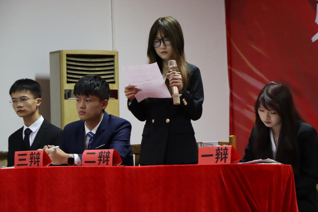 来自经济学2481班和电商2481班的正反两支辩论队进入决赛。辩论赛分为开篇立论、攻辩、自由辩论,观众提问,总结陈词五个环节。正反双反围绕辩题展开激烈辩论,整场比赛中,辩手思维敏捷,攻防结合,论证严密,正反双方凭借犀利的语言、高超的答辩能力,赢得了现场观众的阵阵掌声。经过激烈的角逐,电商2481班以9比6的比分,荣获新生辩论赛冠军。陶连洲为冠军队伍和最佳辩手颁奖。