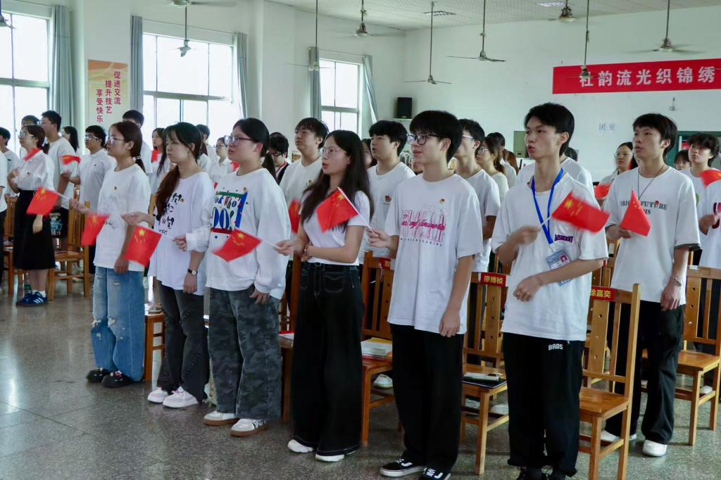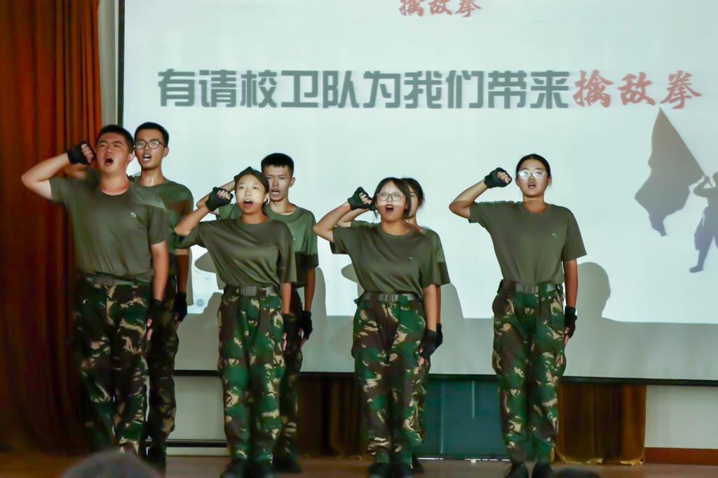 活动伊始,《光荣啊,中国共青团》旋律响彻全场,同学们以饱满的热情唱出对共青团的热爱。随后,校卫队的擒敌拳表演,以刚劲有力的动作和昂扬的精气神,展现了校园守护者的纪律与风貌,引来同学们的阵阵掌声。