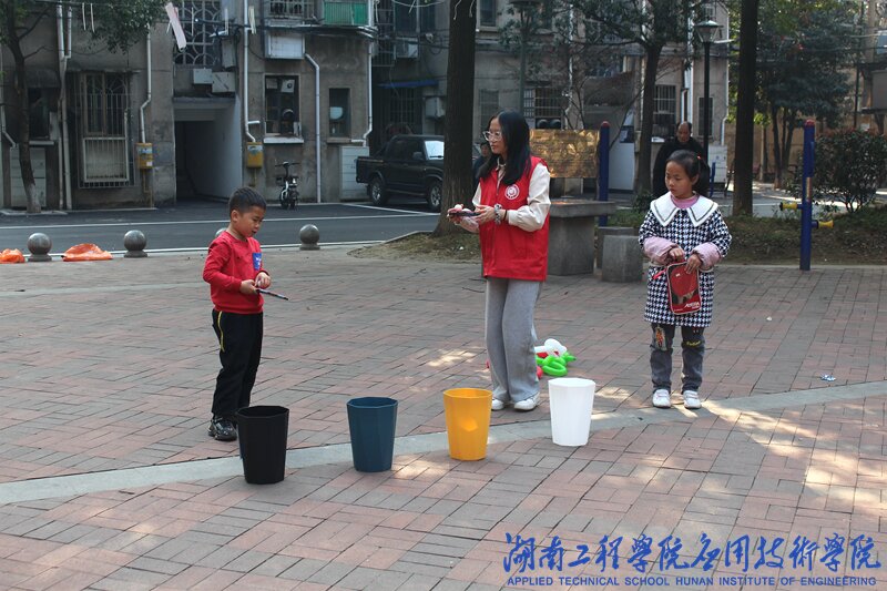 垃圾是放错地方的资源,然而垃圾的回收与利用却被垃圾分类这一问题所限。到达飞机坪社区后,青年志愿者中心的志愿者们进行张贴海报、挂横幅、吹气球等准备活动,他们将套圈、跳袋、垃圾桶等游戏道具摆放整齐,志愿者们在地上摆放不同的垃圾图片并在上面摆放不同的零食,参与者套圈并答对套中的垃圾属于哪种类型的垃圾,即可获得奖品。该社区的居民纷纷加入进来,现场氛围热烈。在青年志愿者们的提示下,他们快速分辩垃圾类型,成功获得奖品。在随后的麻袋跳环节中,由三人分别套上麻袋,裁判随机说出垃圾名称,最先跳到正确的垃圾桶旁则获得胜利。随着活动的深入,在场参与的人员数量增多,吸引许多老年人、青年人的关注与喝彩。
