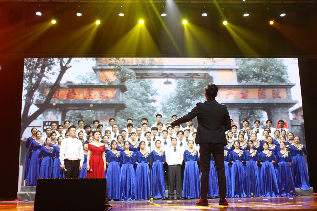 合唱队由30名教师和70名员工组成,由于演唱曲目难度大、人员众多,队员们克服种种困难,利用个人休息时间,全身心投入到合唱排练之中。一个多月的辛苦排练,只为以最好的状态参加本次献礼展演。歌曲结束,全场响起热烈掌声,合唱曲目《在灿烂的阳光下》完美结束!