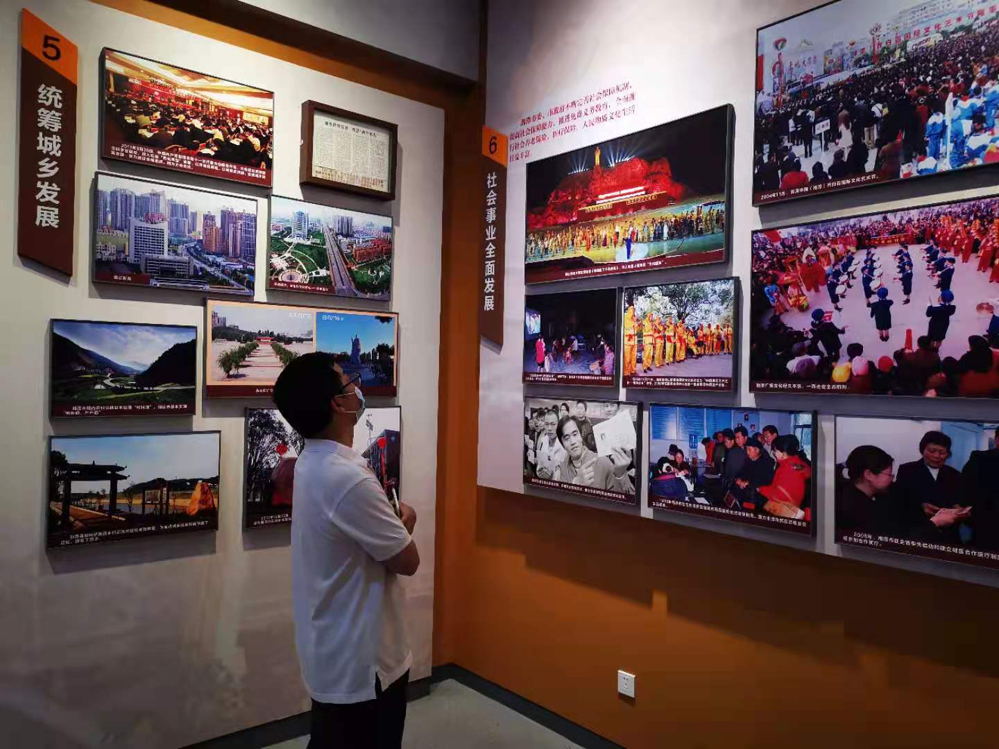 湘潭市党史馆包括序厅、觉醒、革命、建设、改革、筑梦、湘潭群英谱等七个部分,通过图片文字以及场景搭配,并以铜雕、浮雕、壁雕、绘画等视觉展览方式进行展示,生动再现了当时的情形。在党史馆展厅内,大家边看展板、边听讲解,通过一件件珍贵展品、一张张老照片、一个个感人故事,重温伟大历程。