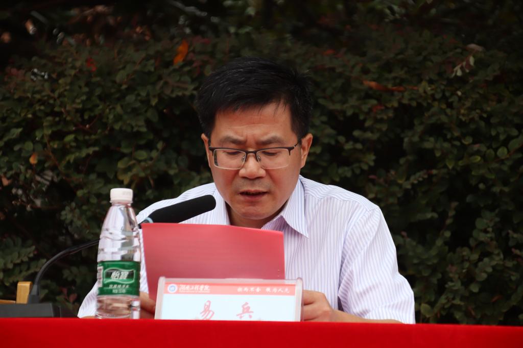 最后易兵勉励同学们“志存高远,苦练本领,自觉将个人选择、奋斗汇入时代发展的洪流,始终与时代同心同向、与祖国同频同振、与人民同呼吸同奋进,以青春之我、奋斗之我,成就青春之湖工、青春之中国!”
