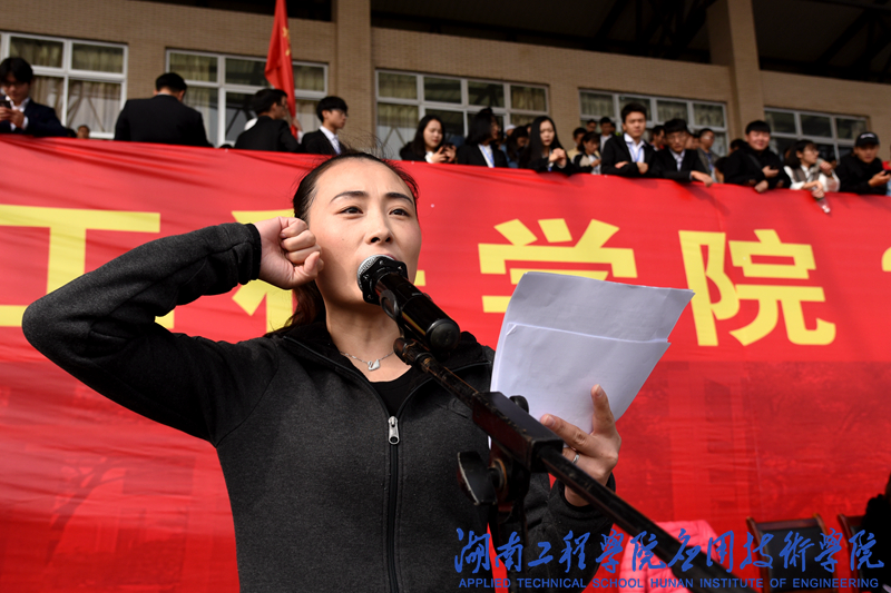 金融工程1882班陈燕庭和裁判唐炼上台分别作运动员代表和裁判代表宣誓。