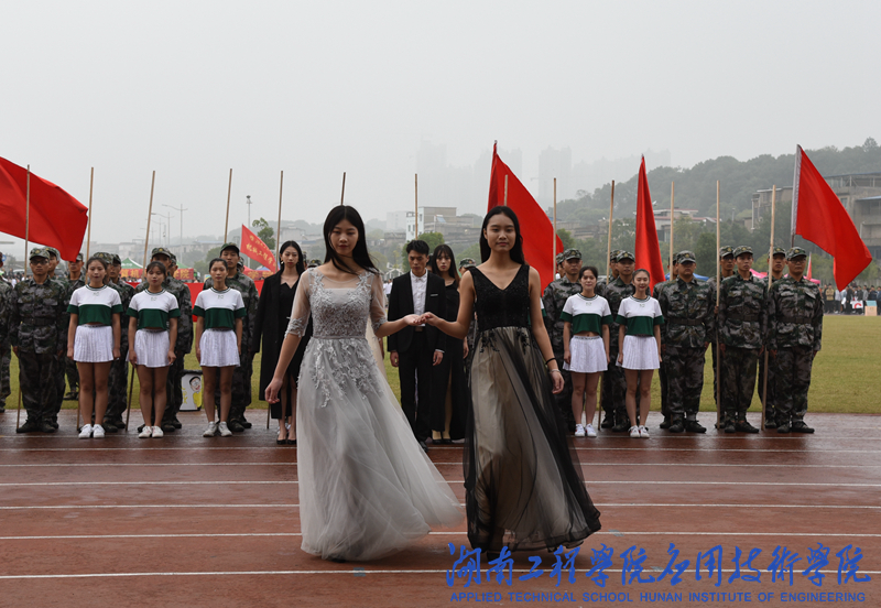 上午8:30,来自14个公司的运动员方阵依次登场。一张张活力与自信的面庞张扬着青春的气息,全场气氛高涨。首先入场的是365英国上市集团方阵,方阵前的礼仪队气质优雅,T台走秀青春灵动,与健美操队的表演相得益彰。国旗护卫队用身体为盾木棍击打的精彩表演更让观众席上掌声雷动。其他各公司方阵代表队各具特色,精彩纷呈,彰显湖工学子的积极奋进的良好姿态。