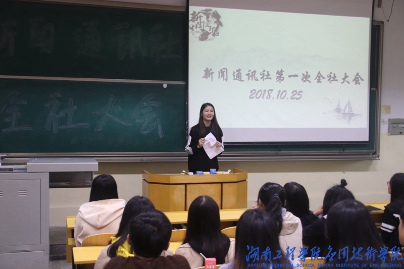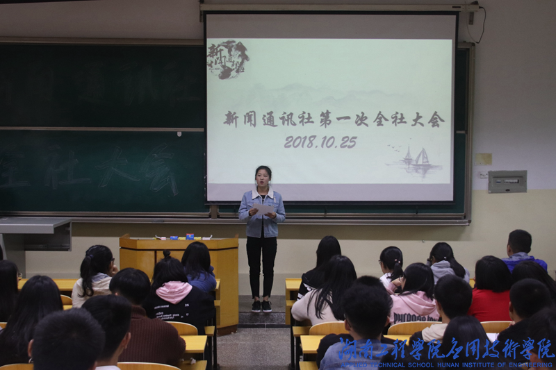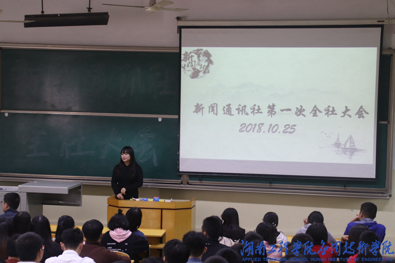 会议伊始,各部门部长依次介绍部门情况。随后,摄影部新干事刘慧作为代表发言,她表示非常荣幸地能够成为新闻通讯社的一员,她将在今后的日子里更加严格地要求自己,为部门的发展贡献自己的一份力量。接着,由老干事们上台跟大家分享这一年以来自己在新闻通讯社的收获与感受。记者团主任吴靖上台发言。她分享了自己在部门的经历,希望全体干事能够通过部门锻炼自己,有所收获。