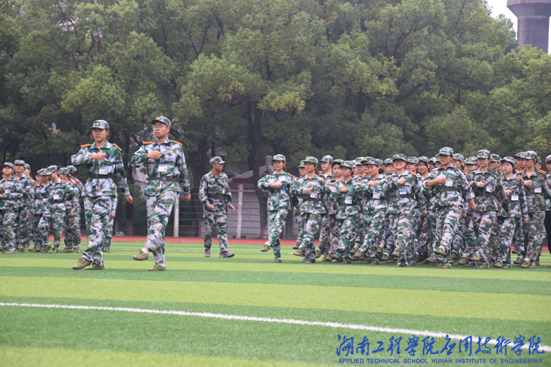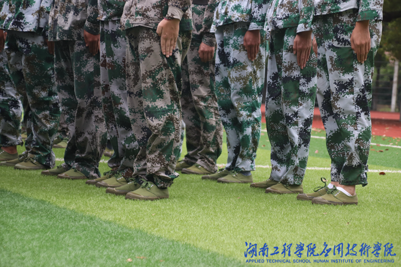 集合、看齐、立正、稍息、整理着装,从开始的乱手乱脚到现在的井井有条;齐步、正步、向左转、向后转、齐换正,从当初的杂乱无章到如今的整齐划一。腿麻、腿酸,哪怕被太阳晒得口干舌燥,仍不到万不得已,决不退缩。从早到晚,在阳光的洗礼中,新生们不断蜕变着。即使湿漉漉的迷彩服贴紧了肌肤,也依旧抬头挺胸,昂首向前。