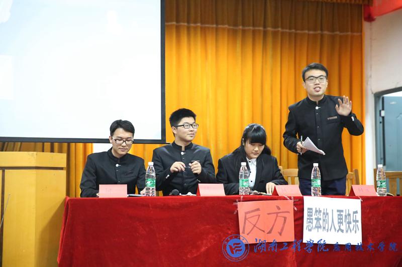 10月12日晚,公司与机械公司的辩论表演赛在南校区第一教学楼四楼活动中心举行,此次辩论赛的辩论题目为聪明的人更快乐还是愚笨的人更快乐。到场的评委嘉宾由机械公司、学通社以及公司员工干部组成。