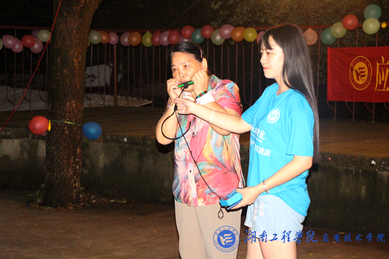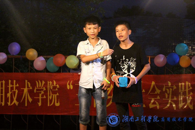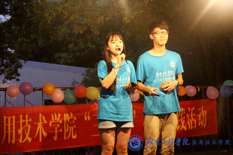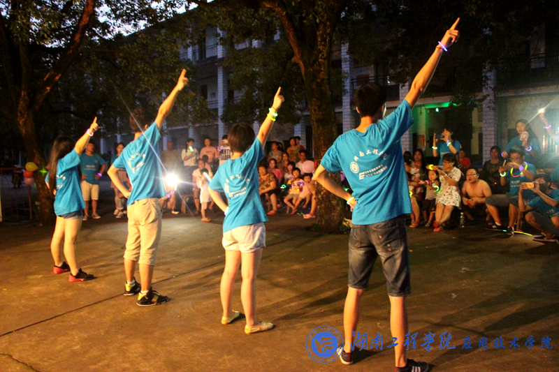 7:00,云湖桥镇中学附近的村民已经陆陆续续来到会场。7::30,一首《奔跑》大合唱拉开了晚会帷幕。观众们挥舞着手中的银光棒和大家一起哼唱。夏栗和赵梓棋两个小朋友合唱《素颜》,显然,他们有点紧张,不敢放声歌唱,也没能跟上节奏。马上,所有队员们挥动手机灯光,和他们一起唱,两个小朋友唱得越来越放松,出色地完成了表演。动作新颖,奇特的雷人舞,让观众一再拍手叫好。激昂的《蓝莲花》,展现了队员们的热情和力量;《棠梨煎雪》悠然恬静,让观众们听得如痴如醉。华尔兹《Can I have this dance》,女生们优美的舞姿,男生们有力的步伐,将晚会推向高潮。所有“三下乡”活动队员和7名小朋友合唱《团结就是力量》,铿锵有力的歌声让观众共鸣,成为了全场大合唱。最后,全体队员和7个小朋友表演手语《感恩的心》,向自己的父母,老师致以最真诚的感谢。《难忘今宵》响起,全体表演者向观众鞠躬致谢,宣告此次晚会圆满落幕。