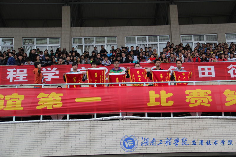 下午4:30,闭幕式正式开始,公司代表队高举院旗,与同来自各公司代表队昂首走进会场,整齐的站在主席台前。
