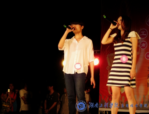 比赛在神曲《忐忑》中正式拉开了序幕,来自各公司的10位选手闪亮登场,一展歌喉。 比赛中,选手们用自己动听的歌声和精彩的舞台表现,诠释着青春飞扬的个性,展示着湖工学子的亮丽风采。选手们都有各自的特点,有的选手台风好、舞台感强;有的选手能适时地带动现场的气氛,用他们的音乐和热情感染了在座的每一个人。整个比赛过程气氛热烈,激情挥洒,掌声和喝彩声源源不断,一次次地将整个会场气氛推向一个又一个高潮。