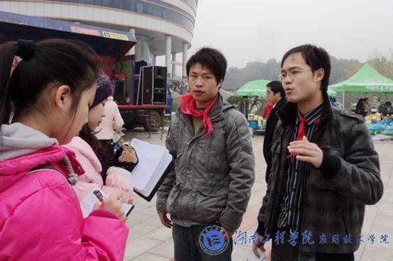 早上7:00,活动现场就聚集了市场营销0881班的同学以及公司青年志愿者中心和外联部的志愿者们。微冷的清晨,他们正忙着摆摊设点、搭棚运货及搭建舞台。空闲之余,记者采访了本次活动的主要策划人——市场营销0881班刘俊凯和贺李勇,他们介绍说,这是他们班在两个实践周自发组织、策划的实践活动。希望把爱心活动与专业实践联系起来,尽早用他们的专业知识去服务社会。他们表示:“在2008年冰灾、汶川大地震发生后,看到四面八方的人伸出援助之手,十分感动,深受鼓舞。而当他们看到有些同学在寒冷的冬天没有足够的衣服和被子保暖时,心里十分难过,希望能够通过自己的努力让他们在冬天不再寒冷。” 对于此次活动的主题“让爱传承,责无旁贷”他们是这样解释的—— “让爱传承”这是首届义卖活动,他们希望这样有意义的活动以后能够经常在公司举行,把爱传递到湖工的每一个角落;“责无旁贷”则是指我们每一个人都有责任和义务去帮助需要帮助的人。在接下来的开幕式上,市场营销0881班同学们的一首《爱的奉献》把同学们的心紧紧的拉到了一起,而刘俊凯同学激情澎湃的开幕词更是温暖了无数人的心。现场,我们看到了许多同学来参加义卖,活动现场十分热闹,一万余元的义卖商品也很快销售完了。其实,这不是简单的买与卖,而是一次爱的传递。当天下午6:30,持续了将近十个小时的义卖活动圆满结束。