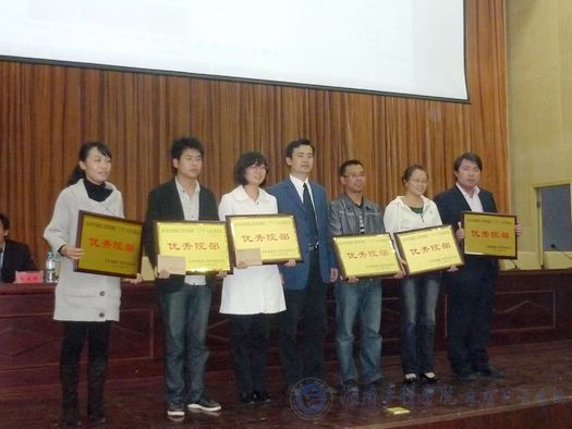 随后,校团委书记张小刚对“三下乡”和省运会从活动特点、成果及存在的不足等方面做了全面总结。员工工作处副处长、校团委副书记毛晓华宣读了“三下乡”和省运会先进的表彰决定。公司在颁奖中鹤立鸡群,风采完全不输于其他公司,公司与其他五个公司同时被誉为优秀院部;娄申老师被评为优秀指导员;任波涛的《关于留守妇女的调研报告》、熊川淇的《共撑一片关爱晴空》、吴哲的《留守儿童调研》、易珊的《农村交通状况调研报告》荣获了优秀调研报告三等奖;熊川淇、李赞、苏志鹏、李汇全、吴哲、吴代熙、孙星宇七位同学荣获了先进个人。
