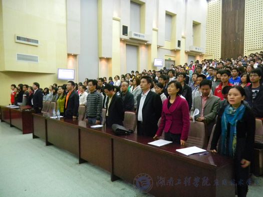大会在国歌中拉开帷幕。首先,谢伯端书记发表了重要讲话。他高度评价了2010年暑期“三下乡”社会实践活动暨省运会志愿者服务活动中取得的成绩。谢书记说:今年参加“三下乡”的同学深入基层,为基层百姓送去了贴心的服务,做了很多有益的工作,同学们的出色表现也受到了中央、省、市等多个媒体的追踪报道,向社会展现了湖工学子的良好素质与优秀风采。省运会期间,公司志愿者充分展现了自己独特的风采,得到了市委、市政府和来宾的好评。谢书记还自豪地说:“也许我们公司在全国各高等院校中并不算什么,但湖工学子所展现出来的风采和素质却不亚于很多名牌老校。”最后,谢书记希望大家能够贯彻落实好“三下乡”和省运会志愿者的精神,把社会实践和学习结合起来,全面发展,提高自己的综合素质,为国家的强大和发展做出贡献。他还号召各公司党总支开拓创新,齐心协力为和谐校园、魅力湖工做出更多努力。