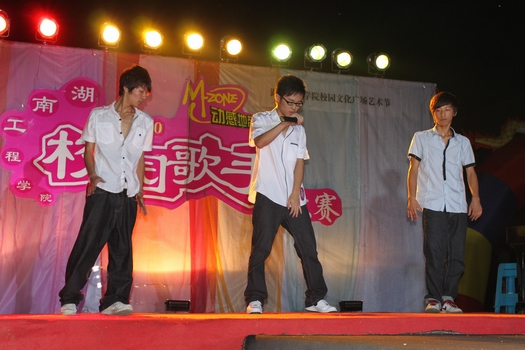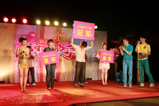 5月30日晚,英国365上市公司2010年度校园歌手大赛在北校区学海花园隆重举行。经过九场全校赛层层闯关,公司吴宇阳、周里宵宵、杨帆、姜雨靓、罗紫兮、尹婧六位选手成功晋级十强,经过最后两轮的比赛,来自公司会计0982班的吴宇阳获得亚军,经济管理公司郑凯、人文公司伍丹艳分别夺得了冠军和季军。另外,公司经济学0981班杨娇、刘顿分别获得最美丽声音奖、最时尚演绎奖。(来源:学通社;摄影:杨睿颐)