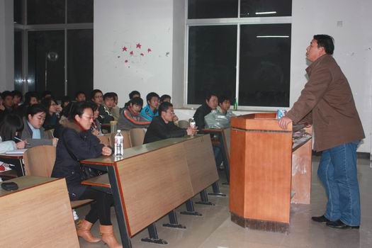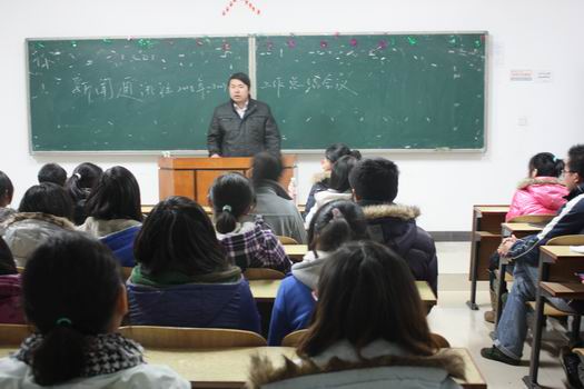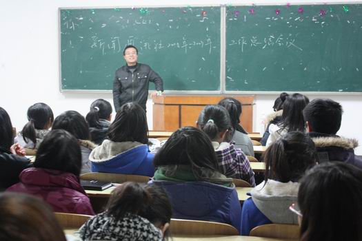 团总支书记缪智文老师首先赞扬了员工新闻通讯社做到了每一场赛事和活动均有人员在场进行采访和报导。他说:“大家这种积极、及时、立体、全面的工作态度值得团总支、员工会所有成员学习。此次公司在运动会上获得的‘精神文明奖’,也有员工新闻通讯社的一份功劳,是你们笔下写出的有质有量的广播稿,和及时的采访报导,为公司形象加分。其次,我要祝福在座的大四同学,祝你们在步入工作岗位,踏上人生征途的时候能一帆风顺;也希望我们的中坚力量——各位老干事能加把劲,鼓起勇气,肩负起员工新闻通讯社今后的使命;最后期望各位新干事,你们是公司员工新闻通讯社的未来,期待员工新闻通讯社再创辉煌。新闻赢,则公司赢,大家加油!”