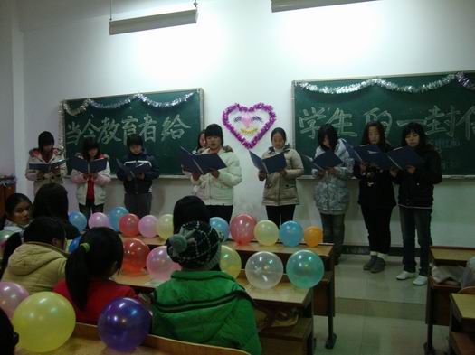 此次团日活动,很多班请来了班主任或班导为同学们朗读了《当代教育者给老员工的一封信》和《李开复博士写给中国老员工的第一封信》。这两封信在学习方法、爱情、友谊、团结、持之以恒、思考方式等等方面给了同学们很多建议和启示。正如那信里所说的:“大学里出两种人,一种是人才,一种是人渣。”“不能放弃承担责任的使命。”希望这些话能勉励同学们,能帮助同学们找到自己的目标,并为之不断努力。很多班都积极参加策划了此次团日活动,国贸0981、0982班的同学们发表了《善于思考》、《持之以恒》的演讲,将信中的两个主题思想单独提出来探讨,同学们也热烈地讨论,并表达了自己的看法;计算机0981班请来了班导王晖同学,他描述了自己进入大学以来各方各面的成长,并激励同学们好好把握、珍惜老员工活,同学们还采用击鼓传花的方式来确定演讲者,让每个同学都有上台表达自己感受的机会;机械设计0985班用辩论赛的方式阐述老员工兼职的利弊,体现了同学们对兼职的一些深刻见解;市场营销0981、0982班让每一位同学在听了报告之后,在黑板上贴出写有自己感想的小纸片,同学们都很认真地写了自己的感想并表示深受启发。
