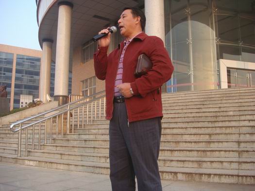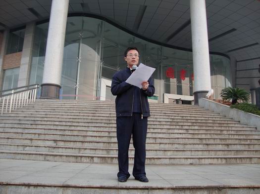 11月5日清晨6:40 ,公司本学期第一次早评在主校区(新)图书馆前坪举行,员工工作部单化任主任、辅导员陶连洲老师作了早评。