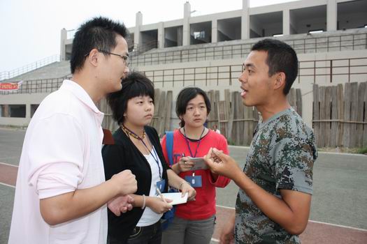 测控0981的李云同学谈到:“大学的军训比想象中要正规。军训,使我们享受到了充实的生活。军训闲暇时的男女拉歌、同学们的文艺表演等等,使我们消除了彼此之间的陌生感,很快融入了积极生活。十几天的朝夕相处,十几天的同甘共苦,新生和教官、老师、师兄师姐们已经建立了深厚感情。” 训练中我们还采访了市场营销0982班班导陈星,她说:可能是由于专业特点的原因,所以同学们都很活泼,比较大胆,在班会上表现得很活跃。从同学们身上,她感受到了这些注入公司的活泼新元素,同时也仿佛看到了自己刚刚入学时对老员工活的新鲜感和无限冲劲。很多同学对即将进行的员工会干事招新都很感兴趣,对这个话题询问和讨论得比较多。在此她也鼓励大家积极地去应聘,只要有激情就要去参加,要注重多方面发展,争取成为复合型优秀人才。在新生领书的过程中,大多数同学对大学书本不太了解,表现得比较迷茫,可能在以后的学习中会有压力,但是我们还是鼓励他们只要好好地学习了,加上预习和复习巩固,一定会取得不错的成绩。另外,她还介绍到个别同学出现了身体不适或者前不久动过手术的情况,但并没有临阵脱逃,在她眼里这些坚持下来的同学都是最棒的。