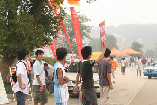 9月18日,烈日当头,但是迎新志愿者们都顶着大太阳在迎新处穿梭、忙碌着,炎热的天气丝毫没有减退迎新志愿者们的热情和耐心。