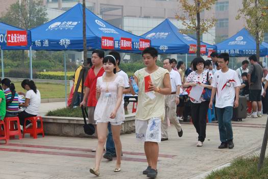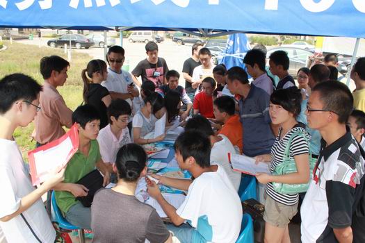 今天抵达公司的新生比昨天更多,迎新工作更忙碌,但增加的工作量并没有减退所有迎新志愿者们的积极性。在公车停靠的地方、在新生报名点、办公室和新生寝室,随处可见志愿者们的身影,他们一边提着行李,一边耐心地回答着新生提出的疑问。很多新生只身一人提着行李就来到公司报到注册,并没有家长的陪同,充分显示出这届新生的独立自主能力,仿佛刚成年了就是一个大人摸样,可以很好地适应一个新的生活环境和学习环境。