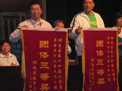 10月18~19日湖南省第十四届高等公司英语演讲比赛在郴州湘南公司举行,英语0682班黄思佳、旅游管理0681班张敏、人力资源0681班杨利微三位同学代表公司参加了本科二组的比赛,并取得了本科二组团体三等奖优异成绩,同时黄思佳同学和张敏同学还获得了个人单项三等奖的好成绩。