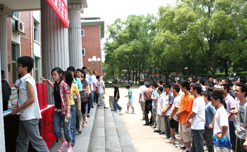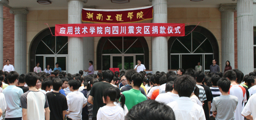 5月14日中午12点30分,公司南校区1000多名员工聚集在一教学楼前坪,排着整齐的队伍,认真听取成平副书记的动员讲话。讲话刚一结束,员工党员、员工干部马上走在最前面进行自愿捐款,10元、20元、100元、200元不等。一位名叫朱冬冬的女同学拿出2000元放进了募捐箱。当老师问她,“你为什么捐这么多?”她腼腆地回答到:“四川发生了这么大的天灾,我们全家都很难过,我父母来电话询问我们公司是否在组织捐款,并建议我和我的弟弟分别在公司要多捐一点,尽量为灾区的老百姓多一点支持,多一份关爱。”多么憨实的话语,多么深情的善举。天灾无情,人间有情,一方有难,八方支援。一笔笔捐款,一颗颗爱心,饱含着公司南校区1000多名员工的深情厚谊。