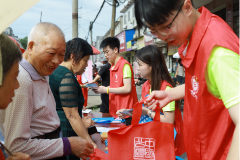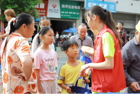 7月8日清晨,恰逢锦石乡早市赶集,政务大厅前坪门庭若市,集市中的人群熙熙攘攘,活动现场,桌面上摆放着各类法治宣传资料,资料内容包括预防电信诈骗、养老诈骗,道路交通安全,毒品预防、涉毒举报,防范邪教、信访工作条例、扫黑除恶、平安建设等相关法治知识。“爷爷,现在电信诈骗的手段是非常狡猾的,我来为您介绍一些主要的手段......”志愿者以饱满的热情和声情并茂的讲解方式吸引路过的民众参与活动。上至古稀之年的老人,下至初入学堂的孩子,还有中年妇女下车后匆匆而来,将自己的亲身经历主动与志愿者分享交流,志愿者也结合自身所学法律知识和公司所见所闻给予回应。