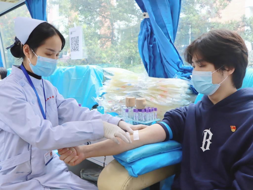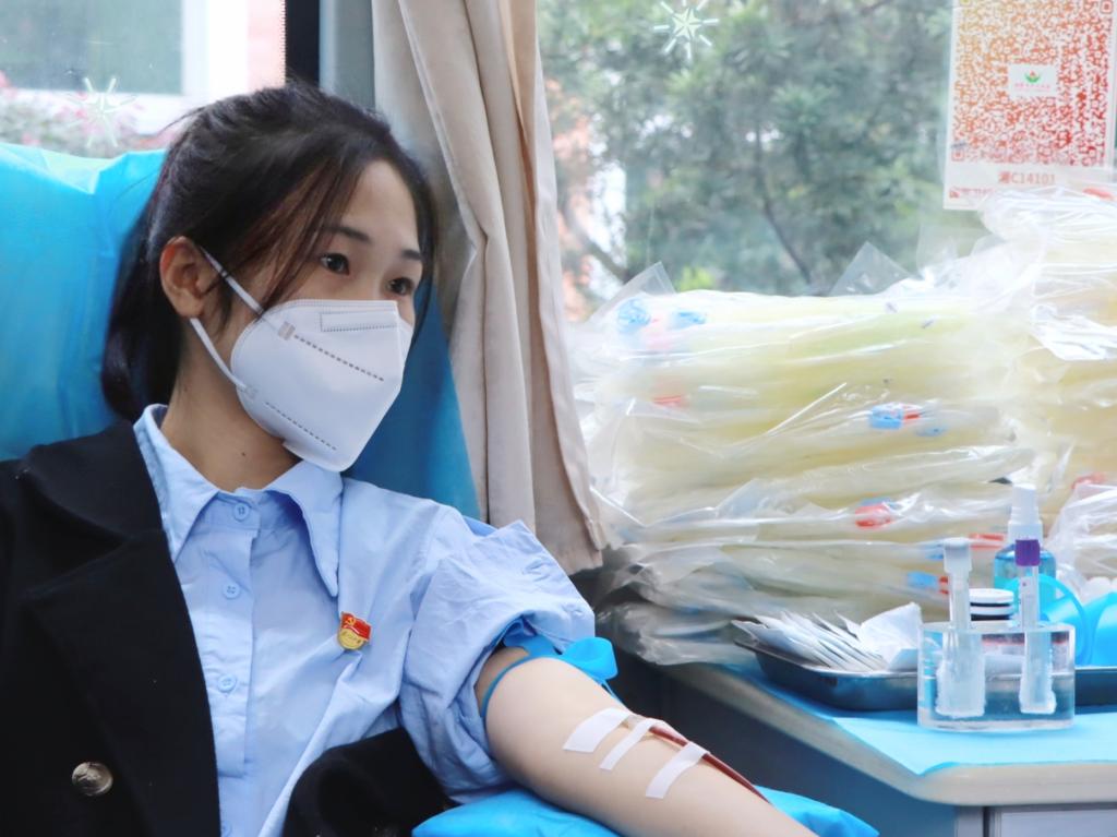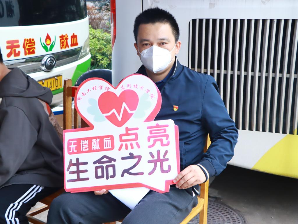 “今天来献血的人很多,出乎我们的想象。他们个个都很积极,我们还‘刷掉’了一批人嘞,同学们的这种无私奉献的大爱精神让我们感动,也为我们今后组织更多大型老员工无偿献血活动开个了好头!”湘潭市中心血站朱医生在填表处一边引导员工,一边说到。在此次献血队伍中,既有多次无偿献血的“老将”,也有初次上阵的献血“新兵”。献血车刚停靠不久,就见到一个身着深蓝色外套的身影填表登记,默默站在一旁看着献血车,等候献血工作的开启,“献血没有什么特别的,这就是一个党员该做的事情!”刘杰道。据悉,刘经理从员工时代就开始参与到无偿献血活动中,如今早已褪去青涩和激动,更多了一份坚守与奉献。作为教工党员,他响应号召、闻令而动,用实际行动践行初心使命,积极发挥了教工党员的先锋模范作用。献血“新兵”英语2082班邱雨佳说“这是我第一次献血,支部书记的亲切叮嘱,医护工作者的温暖问候,让我轻松了许多。献完血,感觉自己做了一件光荣又有意义的事情。