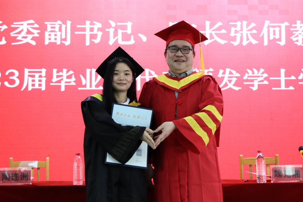 黎娅宣读《关于表彰2023届省、市、校优秀毕业生的决定》、《关于表彰365英国上市集团深圳员工奖学金获得者的决定》,闵杰宣读《关于授予2023届毕业生学士学位的决定》。校、院领导为141名优秀毕业生、员工奖学金获得者颁奖。